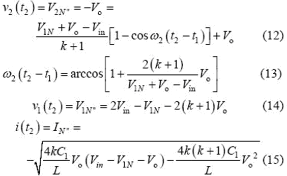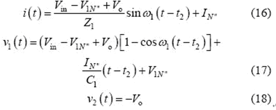 當(dāng)v2(t2)= -Vo 時,該模式結(jié)束,可得到如下表達式