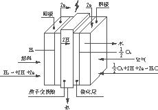 在陽極經過質子交換膜和催化劑的作用,其化學過程為: