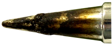 如果焊咀沾滿碳化助焊劑,焊咀便不能夠溶錫把足夠的熱量傳送到焊點上,因為焊咀是必須要透過溶錫作為媒介傳送熱量的。此外,焊咀鍍鐵層會因為溶錫不足而外露氧化,再加上錫和鐵的金屬間化合物氧化,焊咀便會迅速被損耗。在高溫情況下會容易產(chǎn)生此現(xiàn)象,所以應(yīng)盡量降低焊咀溫度。
