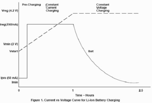 由于MSP430F20X3系列的指令速度可達16MIPS,且SD_16的采樣速度為4kSPS,而且電池電壓/電流/溫度變化緩慢,因此對電池組中單節(jié)電池電壓/電流/溫度檢測采用輪回檢測即可完全滿足系統(tǒng)設計需要;16位的高精度保證了對每節(jié)電池溫度、恒流、恒壓等要求的準確控制。對單節(jié)鋰電池充電的曲線如圖3。