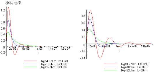 關于Rg、L對于上升時間的影響:(Cgs=1nF,VCgs=0.9*Vdrive)