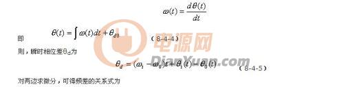 式中的ωi為輸入信號的瞬時振蕩角頻率,θi(t)和θO(t)分別為輸入信號和輸出信號的瞬時位相,根據(jù)相量的關系可得瞬時頻率和瞬時位相的關系為: