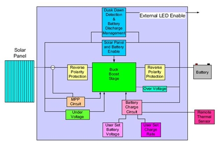 設(shè)計(jì)工作包括根據(jù)功率需求的增加隔離拓?fù)浣Y(jié)構(gòu)。電池充電狀態(tài)的管理是由適當(dāng)?shù)某潆娝惴ㄍ瓿傻?。太?yáng)能電池板安裝技師可以選擇輸出電壓和電池充電速率。由于控制器要連接到太陽(yáng)能電池板,它必須具有最大功率點(diǎn)跟蹤,為最終客戶提供高價(jià)值??刂破饔袃蓚€(gè)正使能(Enable)電路,一個(gè)電路檢測(cè)黑夜時(shí)間,另一個(gè)檢測(cè)電池的充電狀態(tài),使外部電路不會(huì)使電池對(duì)損壞點(diǎn)放電。由于控制器將由不同程度經(jīng)驗(yàn)的現(xiàn)場(chǎng)技術(shù)人員和新手安裝,因此重要的是輸入和輸出必須有反向極性保護(hù)。另外,控制器和電池可能安裝在過熱或過冷的位置,控制器必須采用電池充電溫度補(bǔ)償。設(shè)計(jì)還應(yīng)包括安全功能,如電池過壓檢測(cè)和太陽(yáng)能電池板欠壓檢測(cè)。