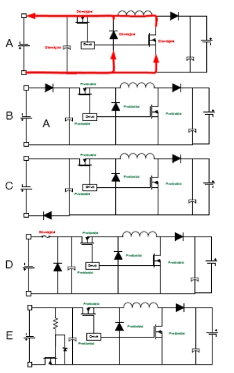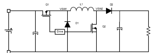 四開關(guān)非反相降壓-升壓有兩種操作模式,即降壓模式和降壓-升壓模式。在降壓模式下,轉(zhuǎn)換器產(chǎn)生輸入電壓脈沖,它經(jīng)過 LC 濾波來產(chǎn)生一個(gè)較低的直流輸出電壓。輸出電壓可以通過修改相對(duì)于開關(guān)周期或開關(guān)頻率的導(dǎo)通時(shí)間來改變。