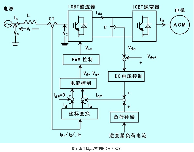 IGBT整流器是一種電壓型PWM整流器,具有能量雙向流動(dòng)、恒定直流電壓控制,以及高功率因數(shù)控制(cosφ≈1.0)等特點(diǎn)。使用該類型整流器除了實(shí)現(xiàn)高功率因數(shù)節(jié)省電能外,還能夠減少電網(wǎng)諧波,省去電網(wǎng)側(cè)無功補(bǔ)償svc裝置。本文介紹IGBT整流器功率因數(shù)控制的方法及CT損壞對(duì)整流器的影響。