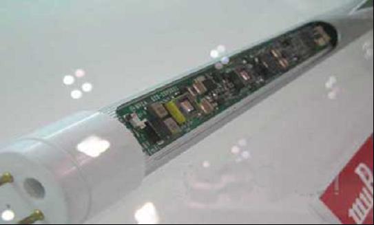 日本村田制作所展示過無(wú)需電解電容器的LED照明用電源,該驅(qū)動(dòng)電源是面向Clear Sodick開發(fā)的電源模塊,其輸入輸出電容器采用了該公司的多層陶瓷電容(MLCC),可內(nèi)置于直管型LED照明器具的管內(nèi)。與采用鋁電解電容器時(shí)相比,除了可縮小產(chǎn)品尺寸外,還能延長(zhǎng)產(chǎn)品壽命。為了獲得恒定電流,采用了DSP微控制器,開關(guān)頻率約為200kHz。輸出電容器采用了兩個(gè)約5μF的MLCC。輸入電壓支持AC100V以及200V兩種。