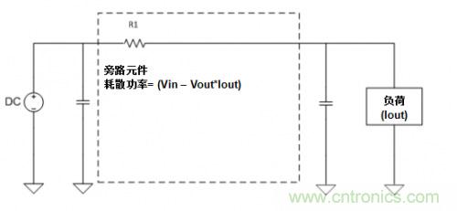 圖1. 線性穩(wěn)壓器框圖。注意,旁路元件將在其自身和負(fù)荷之間形成一個(gè)分壓器,起到耗散功率的作用。
