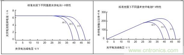 根據(jù)光伏電池參數(shù),在相同光照強(qiáng)度、不同溫度情況下,光伏電池的典型I-V和P-V特性如圖2所示: