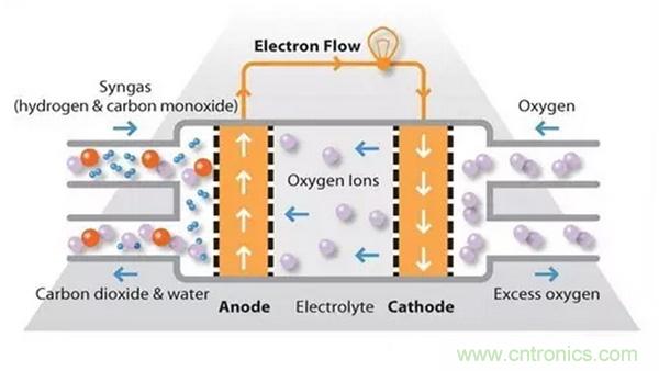 SOFC使用固體陶瓷電解質(zhì),例如用氧化釔穩(wěn)定的氧化鋯,而不是液體或膜。它們的高工作溫度意味著燃料可以在燃料電池本身內(nèi)重整,消除了對(duì)外部重整的需要,并允許單元與各種烴燃料一起使用。與其它類(lèi)型的燃料電池相比,它們還相對(duì)耐燃料中的少量硫,因此可以與煤氣一起使用。