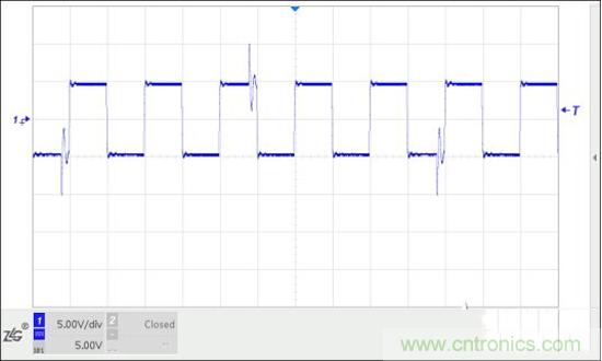 調(diào)試中發(fā)現(xiàn),驅(qū)動器上電但未開啟輸出,電機(jī)轉(zhuǎn)軸處于自由靜止?fàn)顟B(tài),測量到一個(gè)較大的值。用示波器測量傳感器輸出,發(fā)現(xiàn)100kHz脈沖上每個(gè)幾個(gè)周期出現(xiàn)一些尖峰振蕩,經(jīng)過比較器后多了些脈沖,導(dǎo)致測頻結(jié)果高于100kHz。那么干擾信號從何而來?首先懷疑是驅(qū)動器,驅(qū)動器斷電干擾消失。把傳感器電纜從傳感器處拔出,100kHz和干擾都沒有了。證明干擾由驅(qū)動器產(chǎn)生,通過驅(qū)動器輸出線、電機(jī)、扭矩傳感器及連線耦合到功率分析儀。
