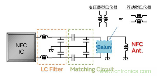 ANFC電路由NFC的IC、LC濾波器、匹配電路、天線(xiàn)構(gòu)成。