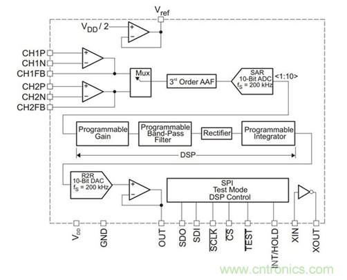 表 2 顯示了各種頻率輸入信號的輸出信號振幅的測試數(shù)據(jù)。 已對每個器件的帶通濾波器進(jìn)行編程,使其具有 6.94kHz 的中心頻率,因此應(yīng)抑制遠(yuǎn)離該中心頻率的輸入信號。