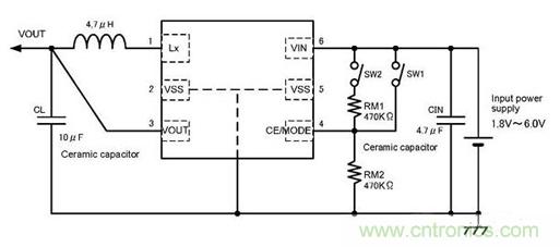 XC9237型在PWM/PFM自動(dòng)轉(zhuǎn)換基礎(chǔ)上,又增加了用外部信號(hào)強(qiáng)制過(guò)渡到固定在PWM工作的功能。對(duì)應(yīng)于使用機(jī)器的工作狀態(tài),能使其工作在紋波更低的PWM工作狀態(tài),能隨時(shí)控制降低噪聲(參照?qǐng)D6)