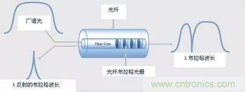 當(dāng)一束寬光譜光經(jīng)過光纖光柵時,滿足光纖光柵布拉格條件的波長將產(chǎn)生反射,其余的波長將透過光纖光柵繼續(xù)往前傳輸,利用這一特性可制造出許多性能獨特的光纖器件。