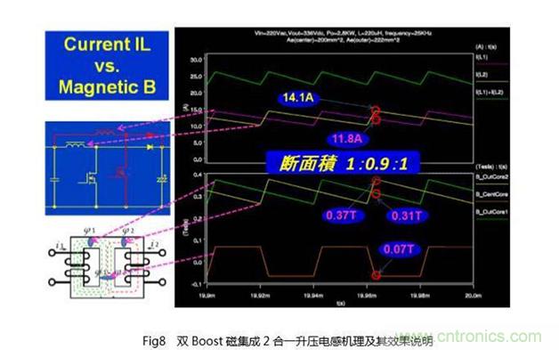 對于功率大的PV逆變器,因其常常采用雙Boost的結(jié)構(gòu),為此若進(jìn)一步引入2合一式的磁集成(Integrated Magnetics)技術(shù),還可以進(jìn)一步提高效率,降低成本。
