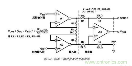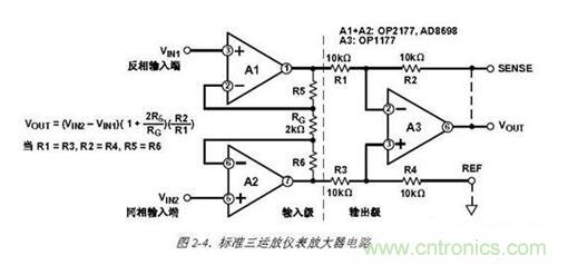 最后,由于結(jié)構(gòu)上的對(duì)稱性,輸入放大器的共模誤差,如果它們跟蹤,將被輸出級(jí)的減法器消除。這包括諸如共模抑制隨頻率變換的誤差。上述這些特性便是這種三運(yùn)放結(jié)構(gòu)得到廣泛應(yīng)用的解釋。