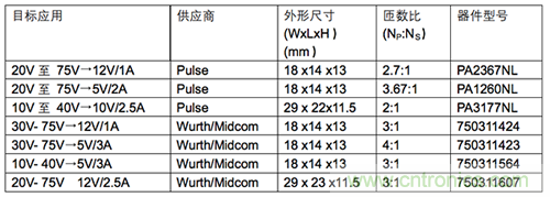 凌力爾特公司與主要的磁性元件制造商進(jìn)行了合作,以生產(chǎn)供 LT3748使用的預(yù)設(shè)計型反激式變壓器。表 1是一張縮略表,羅列了一些推薦使用的市售變壓器,制造商為 Wurth Electronics和 Pulse Engineering 公司。完整列表請見 LT3748 的產(chǎn)品手冊。這些變壓器一般能夠承受 1,500VAC 的主端至副端擊穿電壓(持續(xù)時間為一分鐘)。也可以使用擊穿電壓更高的變壓器和定制變壓器。