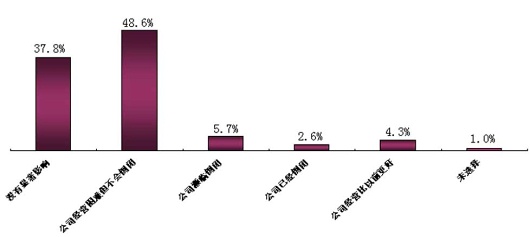 此項(xiàng)調(diào)查結(jié)果出乎我們的意料,選擇裁員的企業(yè)已經(jīng)占到了20.8%,但是多數(shù)企業(yè)還是選擇了調(diào)整經(jīng)營策略。我們特別希望有遠(yuǎn)見的企業(yè)不要把裁員作為應(yīng)對(duì)危機(jī)的主要措施,這也不符合我們“和諧社會(huì)”的主旋律。只要能正確的面對(duì),認(rèn)真分析企業(yè)的優(yōu)勢,研究市場的動(dòng)向,合理配置企業(yè)資源,充分發(fā)揮員工的潛力,調(diào)動(dòng)員工的積極性,企業(yè)一定會(huì)有新的轉(zhuǎn)機(jī)。企業(yè)如能和員工共克時(shí)艱,就會(huì)加深員工對(duì)企業(yè)的感情,這種情感會(huì)轉(zhuǎn)化為企業(yè)的一種優(yōu)勢資源。(見圖表四)
