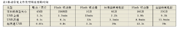 因此,基于Flash的外圍設(shè)備將受益并最終需要高得多的超高速USB 數(shù)據(jù)傳輸速率。其中,包括最常見的USB外圍設(shè)備——無處不在的Flash 驅(qū)動器!表1總結(jié)了從USB全速到高速,再到超高速USB的用戶體驗。需要與個人計算機之間進(jìn)行大量文件或較大文件快速移動的多媒體應(yīng)用將會從超高速USB中獲益良多。它為那些需要在計算機和便攜式消費類產(chǎn)品之間同步多媒體數(shù)據(jù)的用戶提供了滿意的帶寬。