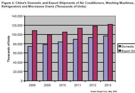 中國的大型國內設備制造商控制著主要家電市場。這些企業(yè)正在國內市場推行產品差異化策略,對于出口市場則以成本掛帥。
