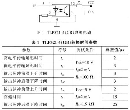 通常情況下,單芯片集成多路光耦的器件速度都比較慢,而速度快的器件大多都是單路的,大量的隔離器件需要占用很大布板面積,也使得設(shè)計(jì)的成本大大增加。在設(shè)計(jì)中,受電路板尺寸、傳輸速度、設(shè)計(jì)成本等因素限制,無(wú)法選用速度上非常占優(yōu)勢(shì)的單路光耦器件,在此選用TOSHIBA公司的TLP521-4。