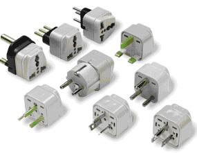 可以預(yù)見,在相當(dāng)長(zhǎng)的時(shí)間內(nèi),交流電插頭/座還會(huì)維持現(xiàn)狀。在不能統(tǒng)一標(biāo)準(zhǔn)而又要解決互換使用的情況下,轉(zhuǎn)接適配器(圖2.3)成為目前行之有效的辦法。實(shí)現(xiàn)將某種插座轉(zhuǎn)換成能與多種插頭匹配的樣式(圖2.4)。適配器自身插頭改進(jìn)后,適用范圍可更廣。