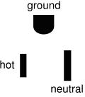 北美ANSI/NEMA標(biāo)準(zhǔn)插座的安裝方向沒有限制(圖3.4a),插座的零/火線通過插孔尺寸識(shí)別——零線插孔較火線更寬(圖3.4b)。相應(yīng)地,插頭上零線插片也較寬(圖3.4c)。這樣,即使插頭為兩芯也能防止插反。相關(guān)標(biāo)準(zhǔn)還特別規(guī)定,20A插頭的零線方向與火線方向垂直(圖3.4d),與之匹配的插座零線插孔為T形(圖3.4e),可向下兼容兩種不同插頭。