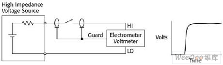 高阻抗電路對(duì)靜電干擾十分敏感,因此DUT和連接線都應(yīng)該很好地屏蔽以防止噪聲感應(yīng)。