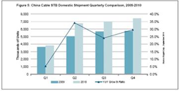 2010年中國有線機頂盒出貨量將達到2510萬個,比2009年的2010萬個增長24.8%。由于各省有線電視運營商加快發(fā)展用戶,以及小型運營商推動客戶從模擬向數(shù)字服務過渡,預計第二季度創(chuàng)下全年的最強勁增長水平。2010年第二季度有線機頂盒出貨量增長到680萬個,比2009年同期的500萬個增長34%。