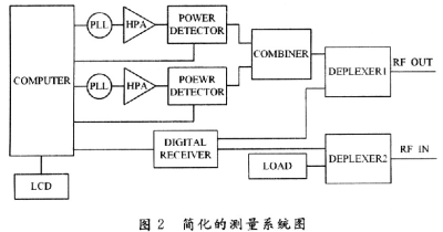 本文中所有PIM的測量都是采用Jonitcom公司的PIM分析儀,外型如圖1所示。其簡化的測量系統(tǒng)圖如圖2所示。