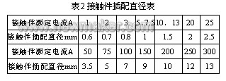 再根據(jù)計(jì)算出的接觸件額定電流值查出接觸件插配直徑(見(jiàn)表2)。