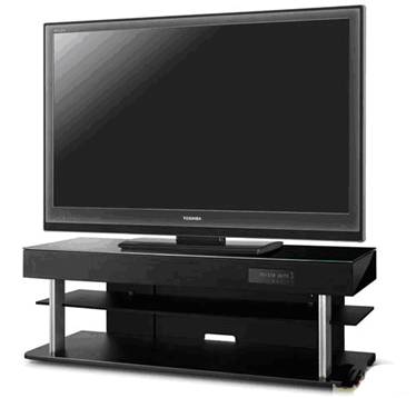 在實(shí)際應(yīng)用中,條形音箱主要置于平板電視下方。如下圖所示: