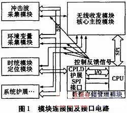 為了滿足系統(tǒng)測試任務(wù),無線傳感器節(jié)點采用模塊化設(shè)計,各功能模塊通過SPI接口鏈接。由于系統(tǒng)功能要求,使一個模塊與多個模塊鏈接通信,其接口電路SPI工作在不同的主從機(jī)模式,使用單一SPI接口主從切換,勢必降低模塊間通信速度與靈活性。依據(jù)可編程邏輯器件CPLD有其編程靈活、易擴(kuò)展性,在模塊內(nèi)部擴(kuò)展專用SPI接口,試驗證明SPI接口電路設(shè)計,有簡化模塊間連接、提高通信速度、系統(tǒng)擴(kuò)展性強(qiáng),以及提高系統(tǒng)整體性能的特點。