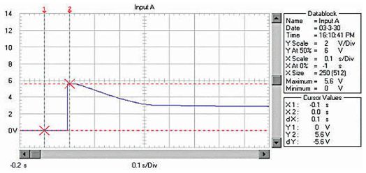 由于RM、RB、RL均非常低,啟動電流非 常大。例如用12V、45Ah的蓄電池啟動安裝1.9升柴油機的汽車,蓄電池的電壓在啟動瞬間由12.6V降到約3.6V!啟動過程的蓄電池電壓波形如圖 1;啟動瞬時的電流達550A,約為蓄電池的12C的放電率!啟動過程的蓄電池電流波形如圖2,(電流傳感器的電流/電壓變換比率:100A/V)。盡管 車用蓄電池是啟動專用蓄電池,可以高倍率放電,但在圖1中可以看出,10倍以上的高倍率放電時的蓄電池性能變得很差,而且,如此高倍率放電對蓄電池的損傷 也是非常明顯的。啟動過程的電壓劇烈變化也是極強的電磁干擾,可以造成電氣設備的“掉電”,迫使電氣設備在發(fā)電機啟動過程結(jié)束后重新上電,計算機在這個過程中非常容易死機。因此,無論從改善汽車電氣設備的電磁環(huán)境還是改善汽車的啟動性能和蓄電池的性能、延長使用壽命來考慮,改善汽車電源在啟動過程的性能是必要的。