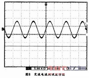 圖8所示是數(shù)字控制逆變器的交流電流測試波形,由圖8可以看出,本系統(tǒng)的交流輸出電流十分穩(wěn)定,完全能夠滿足設計要求。