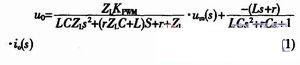 對于圖1所示的單相全橋逆變器,可得到下面的單相逆變電源的連續(xù)域數(shù)學模型式: