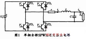 圖1所示為單相全橋逆變電源的主電路原理圖。圖中,Ud是逆變橋直流輸入電壓。L是輸出濾波電感,C是輸出濾波電容,r是輸出電感、死區(qū)效應以及濾波電容的等效電阻。