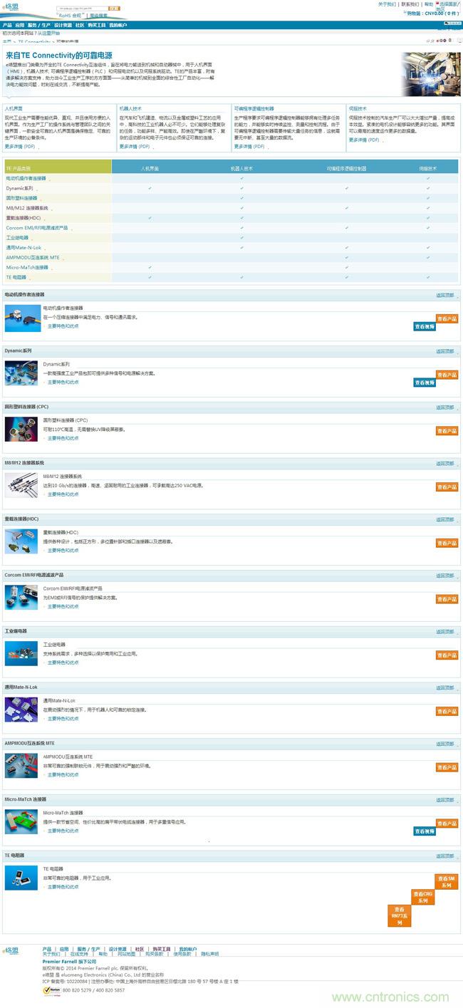 e絡盟子站還為客戶提供一款產品導航器,使他們能夠根據各自的獨特設計需求和應用難點快速購得所需的特定系列TE產品,如Dynamic系列、M8/M12連接器系統(tǒng)、重載連接器、工業(yè)繼電器及AMPMODU MTE連接器等。