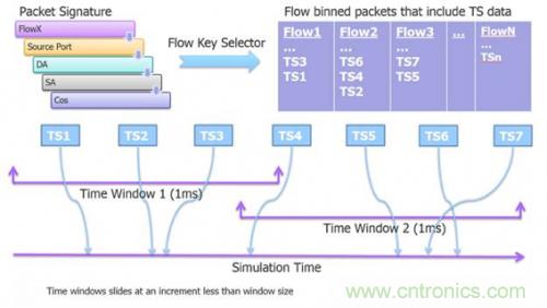 硬件仿真的標(biāo)志之一是,它能對大型復(fù)雜系統(tǒng)進行復(fù)雜性能分析。某些情況下,可能需要數(shù)百萬個數(shù)據(jù)包才能切中當(dāng)前設(shè)計中穩(wěn)態(tài)分析的要點。以測量百萬兆以太網(wǎng)交換機的流量比特率為例。可以采用虛擬以太網(wǎng)簽名生成和數(shù)據(jù)包時間戳 (TS) 來計算這些測量。