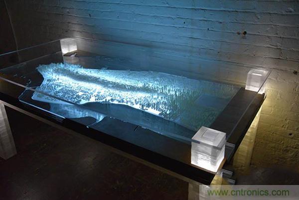 【導(dǎo)讀】在紐約長(zhǎng)大的藝術(shù)家Troy Huang使用3D打印和激光切割技術(shù)制作了一張讓人驚艷的桌子,這張桌子上布滿了曼哈頓的每一棟建筑模型。這就是曼哈頓城區(qū)的微縮模型,盡管是微縮的,但是其中的每棟建筑、每條街道都清清楚楚,十分精細(xì),再用LED燈點(diǎn)亮,一座燦爛輝煌的世界之都呈現(xiàn)在我們眼前。