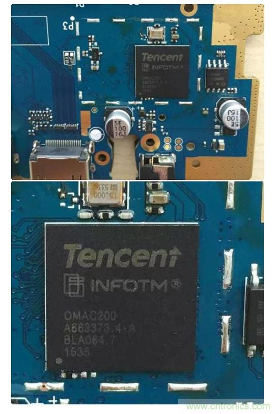 如此看來(lái),這塊定制芯片應(yīng)該就是騰訊委托盈方微電子設(shè)計(jì)、加工而成,然后雙方在芯片上共同留有Logo,形成雙品牌。