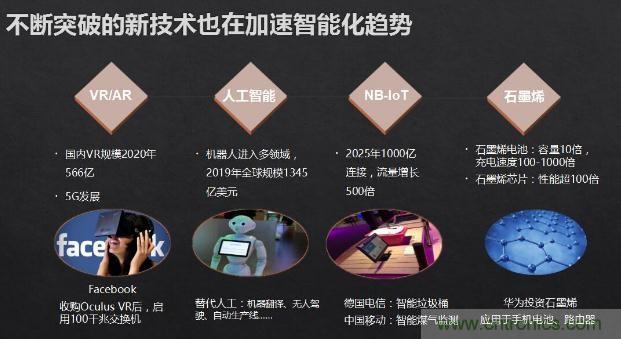 在談到未來(lái)網(wǎng)絡(luò)中之前,首先要談到人工智能。因?yàn)槲磥?lái)屬于智能服務(wù)的時(shí)代,信息通信技術(shù)的演變也將向智能服務(wù)發(fā)展。不斷突破的新技術(shù)在加速智能化趨勢(shì)。如下圖: