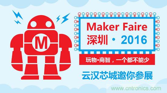 【導讀】2016年10月21日-10月23日Maker Faire在深圳南山蛇口海上世界舉辦,云漢芯城作為合作伙伴參展,為大家準備各種抽獎及現(xiàn)場開發(fā)板特賣等活動,屆時我們不見不散,一起嗨翻天。