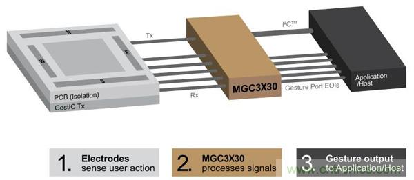 其中比較有代表性的,要數(shù)Microchip公司的GestIC技術(shù)。它基于電場感應(yīng)的原理,在電子設(shè)備周邊的空間中形成一個電場。當(dāng)手部在空間中運動時會使電場發(fā)生畸變,布設(shè)在電場中的電極接收器會感應(yīng)到這種變化,并通過專門的控制芯片進(jìn)行信號處理,對手勢進(jìn)行識別和運動追蹤,并將數(shù)據(jù)傳遞給電子設(shè)備做出響應(yīng)。Microchip代理商世健公司產(chǎn)品經(jīng)理介紹,與采用攝像頭的光學(xué)3D手勢識別技術(shù)相比,GestIC技術(shù)最大的優(yōu)勢在于功耗極低,能耗節(jié)省多達(dá)90%,同時能避免環(huán)境光等外部因素的干擾,雖然是一個近場識別技術(shù),但其在家庭自動化、家電控制、音響系統(tǒng)、電腦及配件、汽車電子等方面,會有諸多應(yīng)用場景。