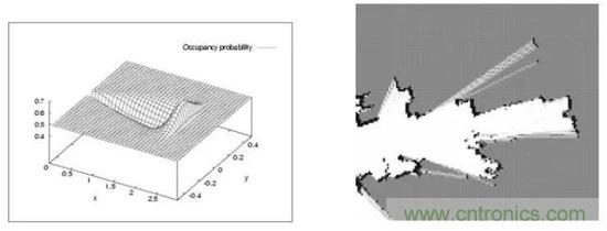 這種地圖看起來和人們所認(rèn)知的地圖沒什么區(qū)別,它最早由NASA的AlbertoElfes在1989年提出,在火星探測(cè)車上就用到過,其本質(zhì)是一張位圖圖片,但其中每個(gè)“像素”則表示了實(shí)際環(huán)境中存在障礙物的概率分布。
