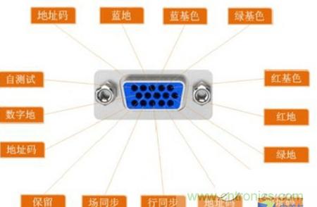 呈三列D型布置的VGA各個(gè)針腳傳輸?shù)奶囟ㄐ盘?hào)