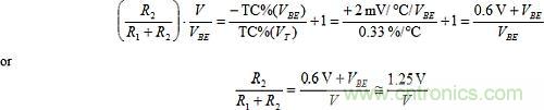 TC%(I0) = TC%(IE)的設(shè)定可以建構(gòu)如下。R0上的唯一變化來自VBE。因此,由T引起的I0的分?jǐn)?shù)變化是: