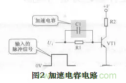 電路中的VT1是三極管,是脈沖放大管,Cl并聯(lián)在Rl上,Cl是加速電容。Cl的作用是加快VT1導通和截止的轉(zhuǎn)換速度,所以稱為加速電容。