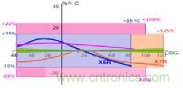 圖一,I類(lèi)和II類(lèi)MLCC的溫度特性和隨溫度的電容變化