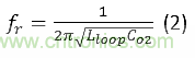 在等式2中,Lloop是高頻回路電感、由高頻去耦電容、eGaN FET(Q1和Q2)以及元件在PCB的連接組成。Co2 = Coss + Cpar包含Coss,它是在Q2阻塞電壓下的底側(cè)FET Q2的輸出電容。Cpar是開關(guān)節(jié)點處的寄生和探頭電容。本文所用的演示板的Lloop估計約為200-300pH [2]。在測試電壓范圍內(nèi),EPC8009的Coss為30pF[3],此演示板的Cpar約為10pF。這顯示fr1~1.6GHz的振鈴頻率?;贓PC2045和EPC2022 的設(shè)計具有較大電容,振鈴頻率估計為fr2~0.44GHz。